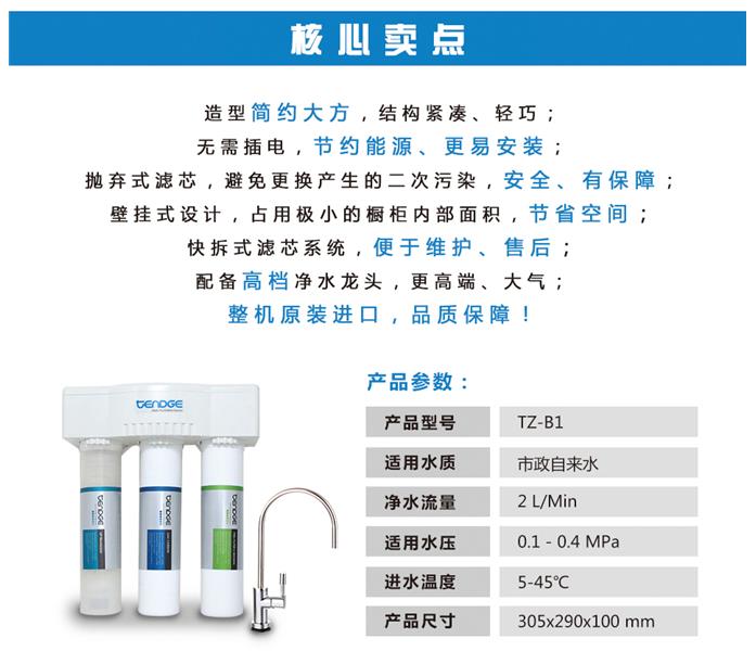 進(jìn)水溫度:5-45℃ 凈水水壓:0.1-0.4MPa