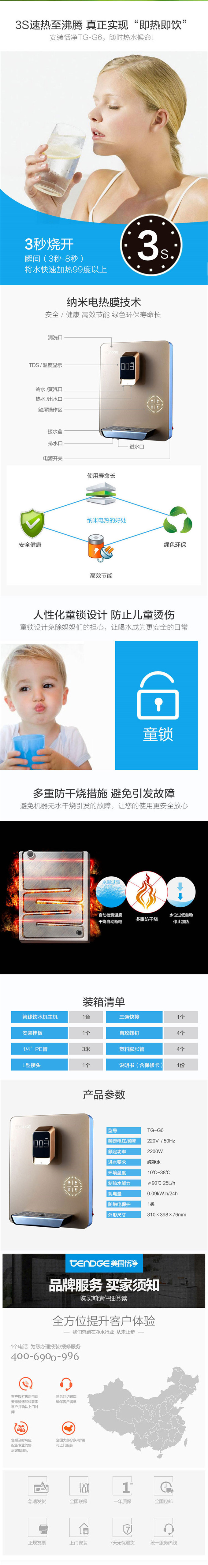 恬凈速熱管線飲水機(jī)TG-G6,采用納米電熱膜加熱技術(shù),有效殺死水中的細(xì)菌微生物,防治二次污染。3秒速熱,隨時可喝上熱水。恬凈速熱管線飲水機(jī)TG-G6自帶防干燒系統(tǒng)與童鎖,安全省心。
